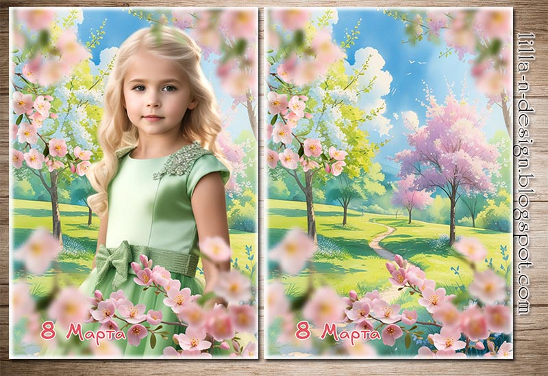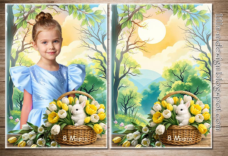 Коллаж для детей к 8 Марта с тюльпанами Весна в саду