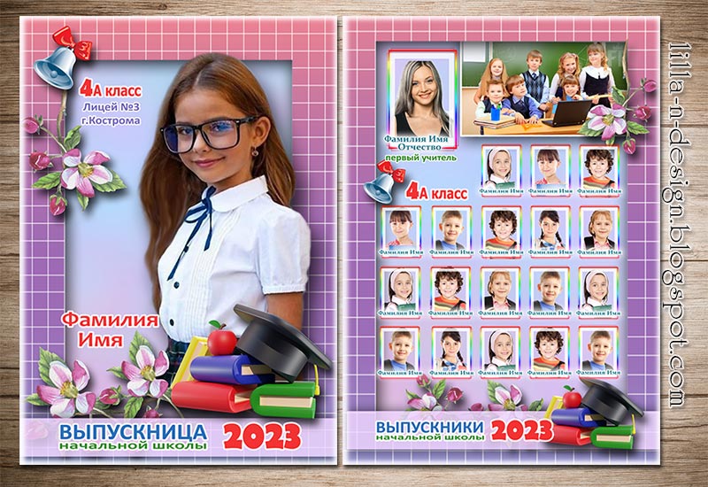 Фотопапка - виньетка и портрет для выпускников начальной школы С выпускным, 4 класс