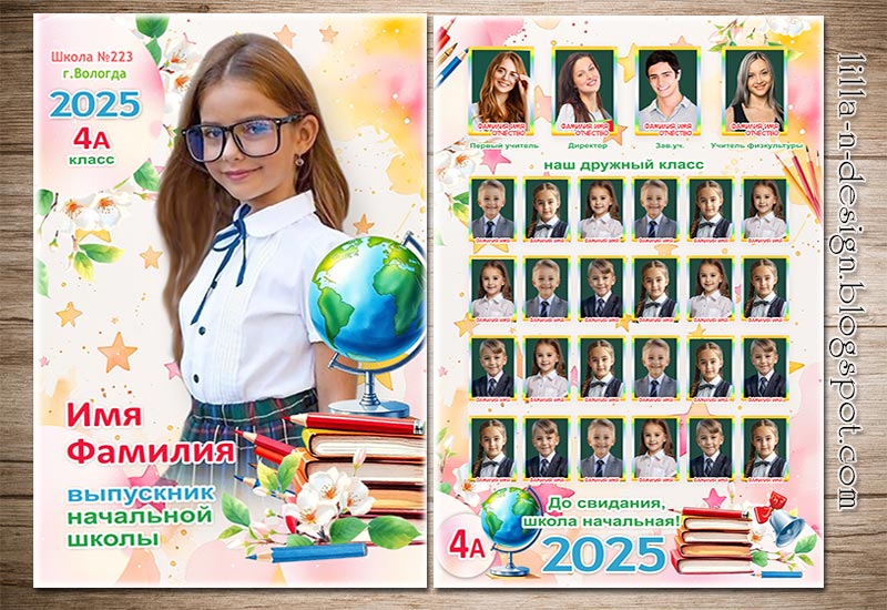 Фотопапка - виньетка и портрет для выпускников начальной школы 4 года пролетели
