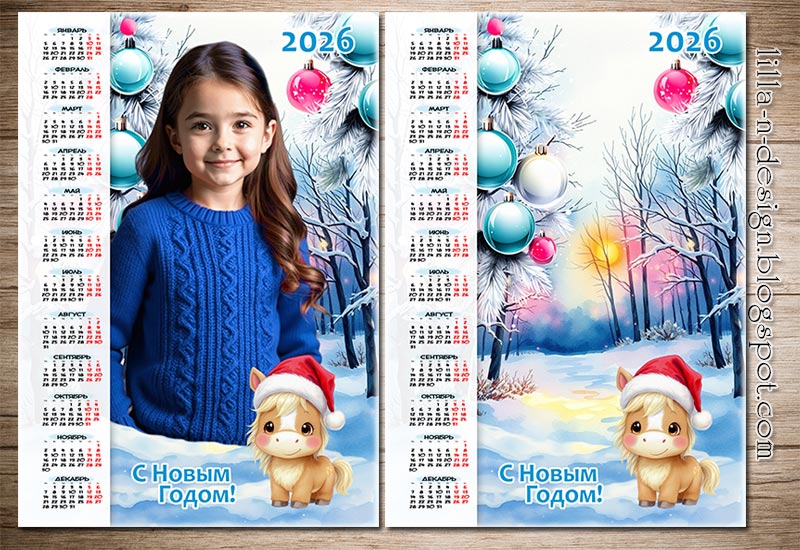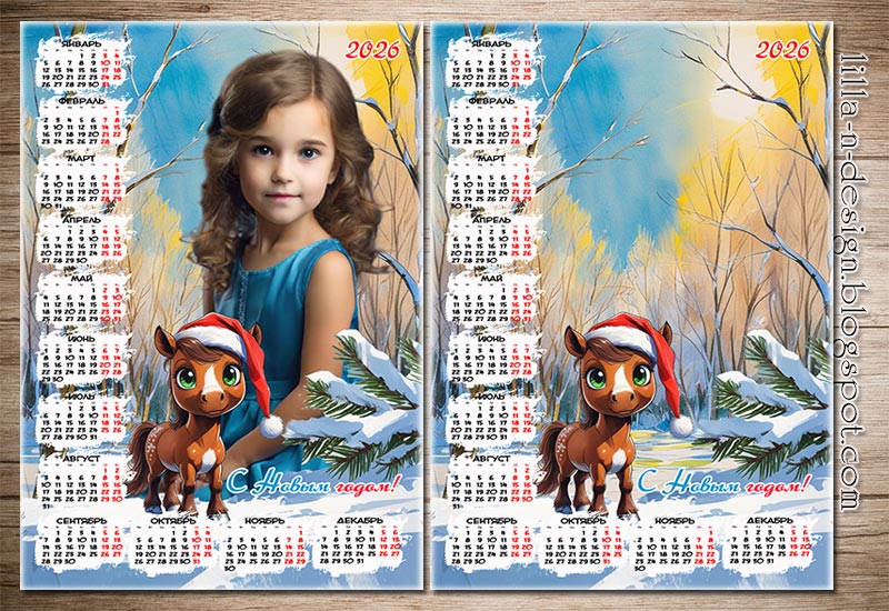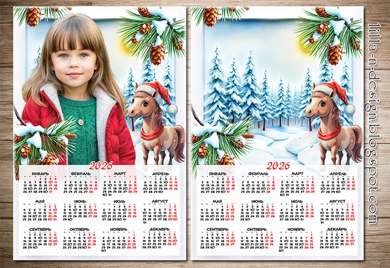 Шаблон календаря на 2026 год для детских портретов Возле елки