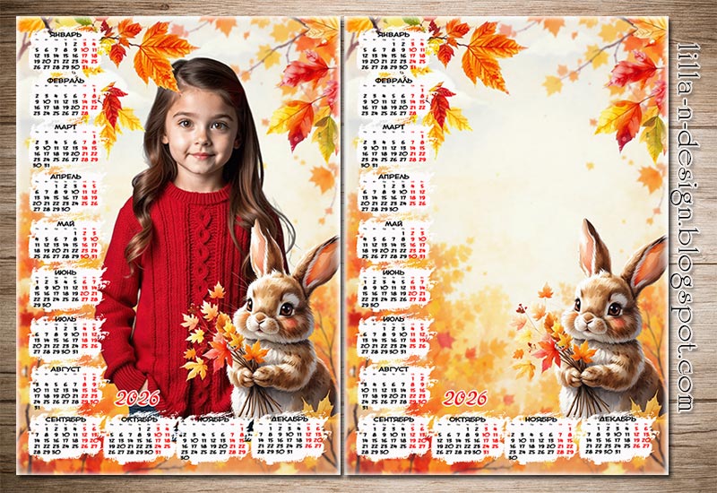 Шаблон календаря на 2026 год для детей Осенний портрет