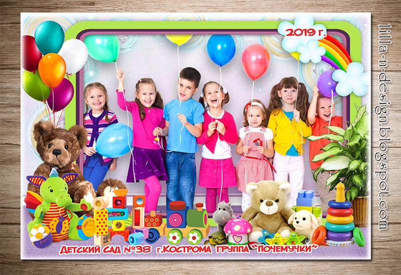 Шаблон группового коллажа для детского садика с игрушками