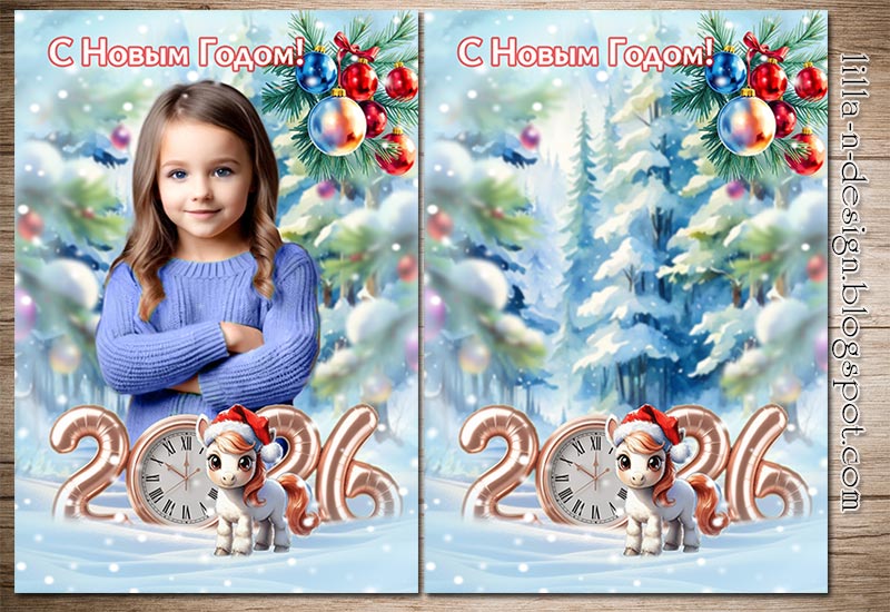 Детский коллаж для новогодних фото к 2022 Новому Году
